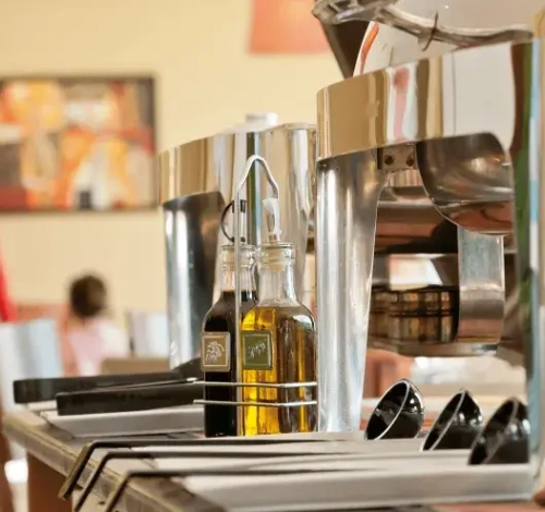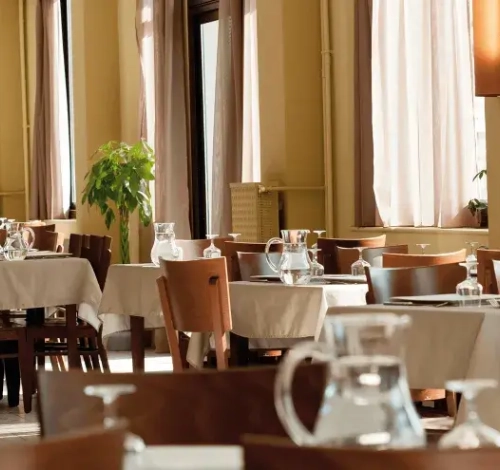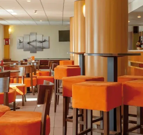 Access to the restaurant, reception, and outdoor terrace is on the same level. To access the lounge with fireplace: 3 steps.
