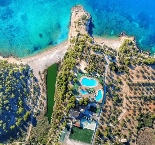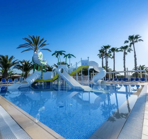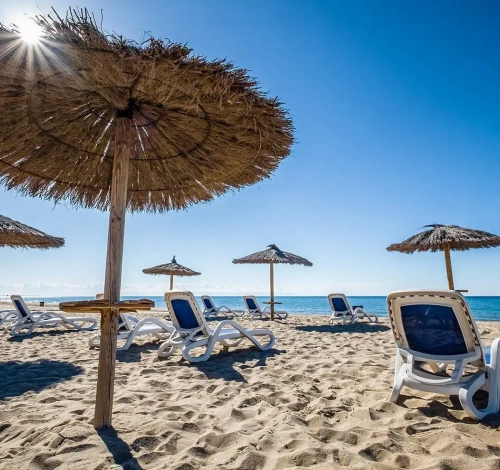 La superbe plage de sable fin face à l'hôtel, idéale pour la baignade de vos petits "bouts"